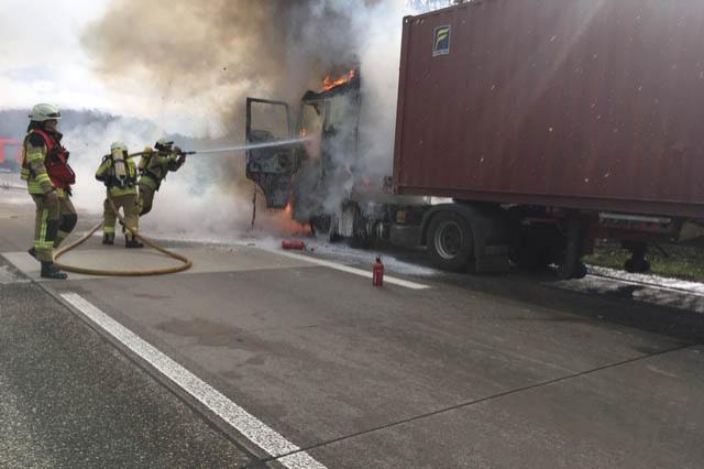 Şofer român de TIR, doar 23 de ani, cu cabina în flăcări, pe o autostradă din Germania