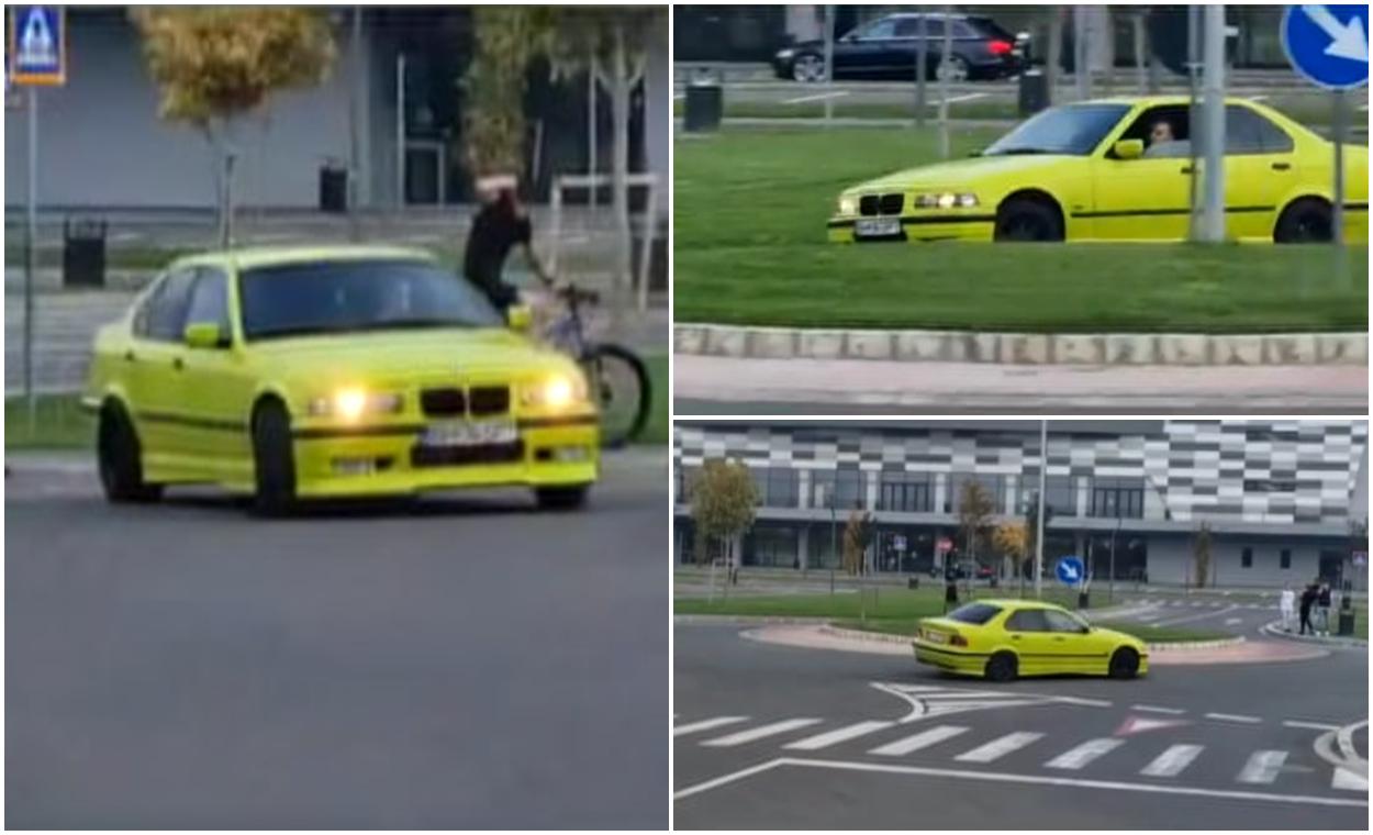 Șofer teribilist, drifturi cu BMW-ul într-un sens giratoriu din Oradea. Tânărul a fost amendat și lăsat fără permis pentru 30 de zile | Sursa foto: capturi video Facebook