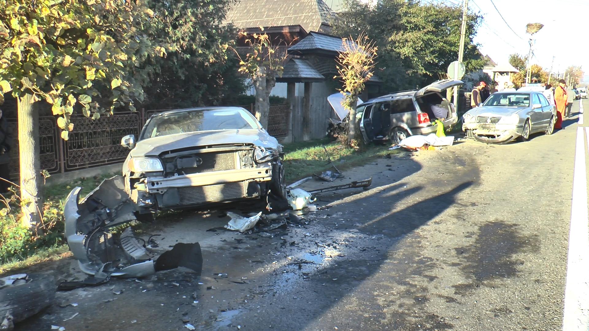 Şoferiţă adoarme la volan, provoacă un accident groaznic la Suceava. O femeie a murit pe loc, 6 victime, 3 maşini implicate