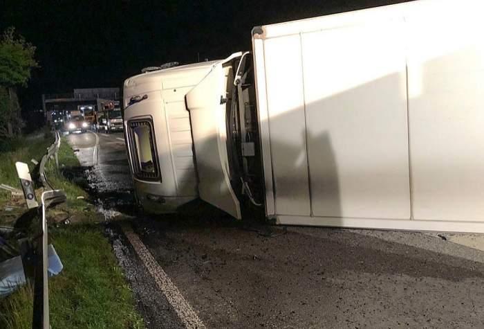Şoferul român care s-a răsturnat cu camionul în Germania, ignorând toate avertismentele de lucrări pe şosea, e bun de plată. 300.000 de euro e valoarea pagubei