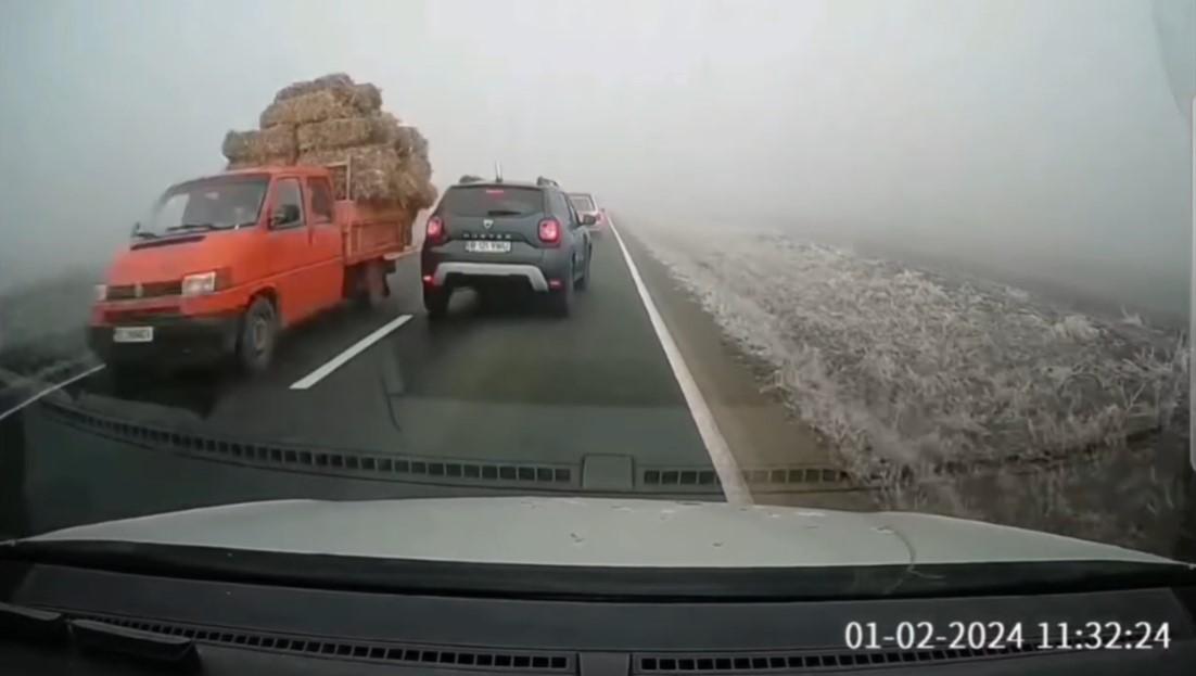 Şoferul unui Duster, depăşire criminală pe un drum din Galaţi. O cameră de bord a filmat manevra inconştientă
