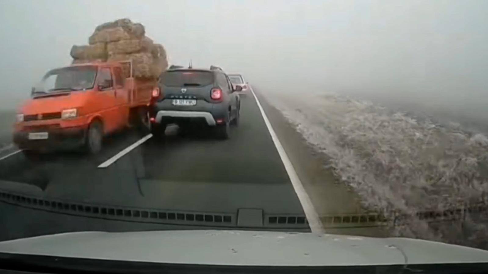 Şoferul unui Duster, depăşire criminală pe un drum din Galaţi. O cameră de bord a filmat manevra inconştientă