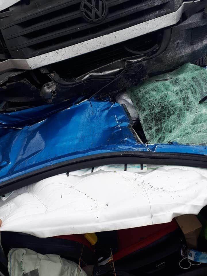 Șoferul unui Mustang, strivit de un microbuz urcat pe mașina lui, în apropiere de Brașov