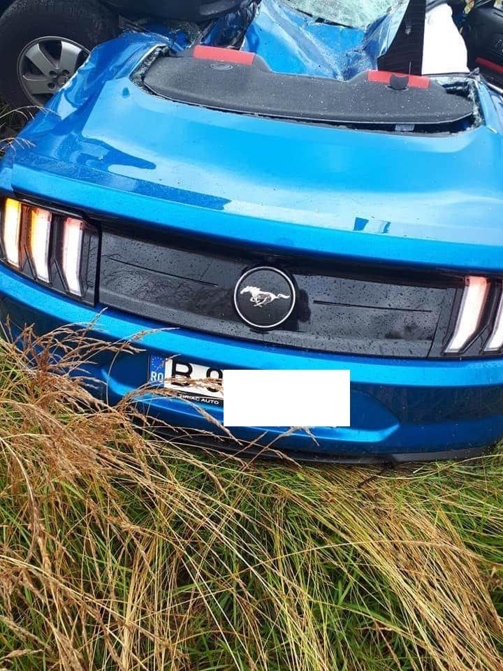 Șoferul unui Mustang, strivit de un microbuz urcat pe mașina lui, în apropiere de Brașov