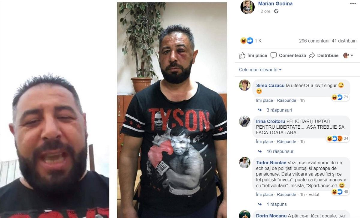 Într-o postare făcută de polițistul Marian Godină, Spartacus apare puternic șifonat după o noapte de arest | Sursa foto: Facebook / Marian Godină