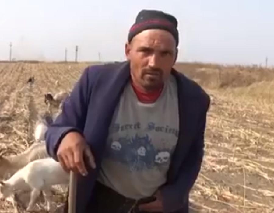 El e bărbatul filmat târându-se în genunchi, după externarea din spitalul din Călărași. Petre, văduv cu trei copii, păzește caprele pe câmp