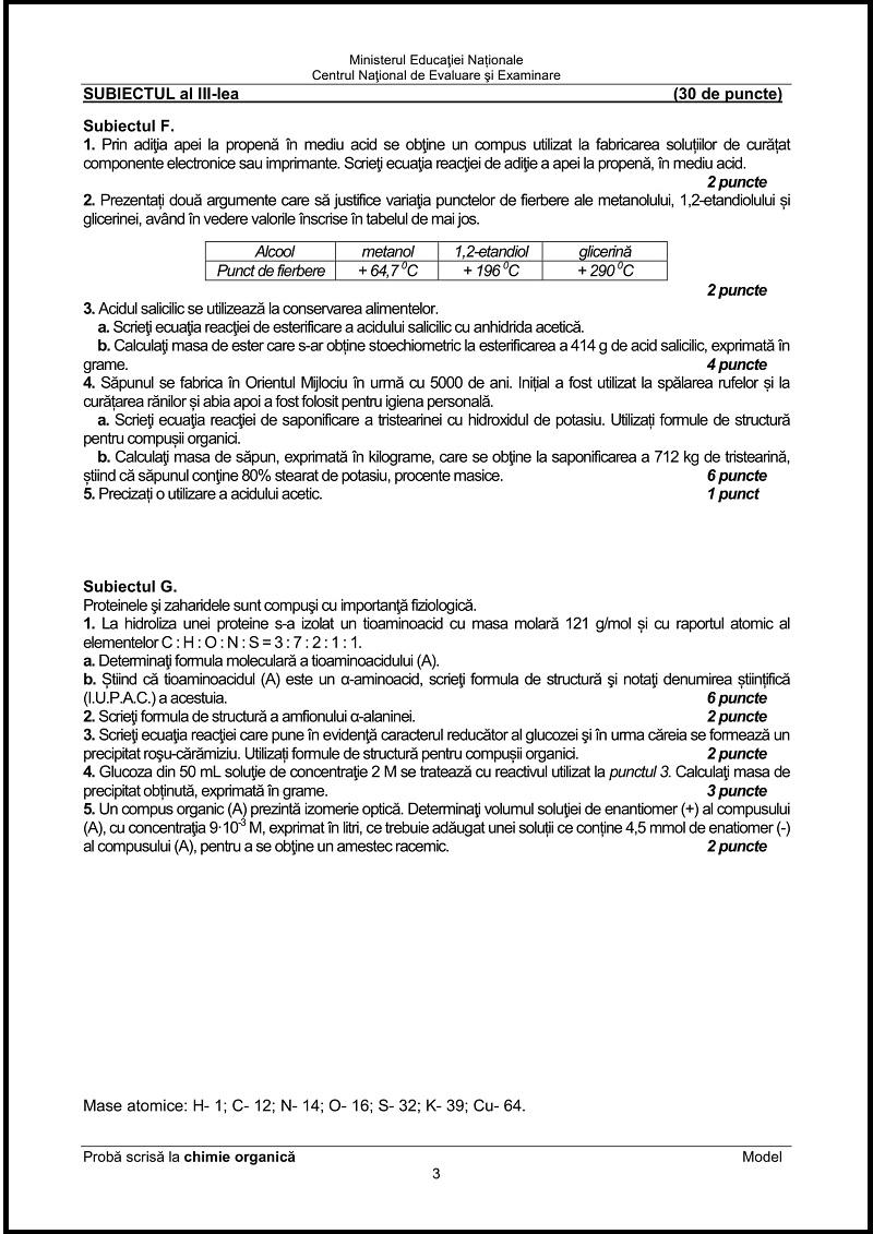 Subiecte chimie Bac 2018