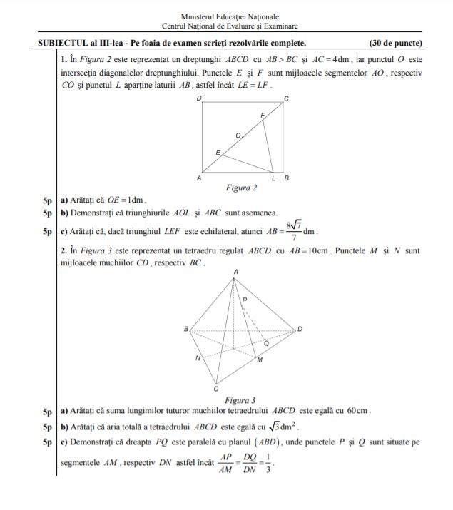 Subiecte Evaluarea nationala 2018 clasa VIII matematica