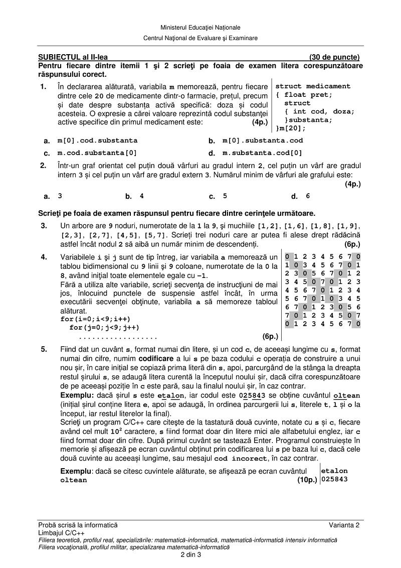 Subiectele la informatica la bac 2018 | Sursa foto: edu.ro