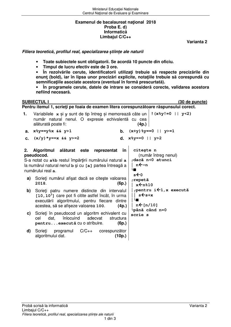 Subiecte Informatică Bac 2018. Ce au avut elevii de rezolvat la această probă