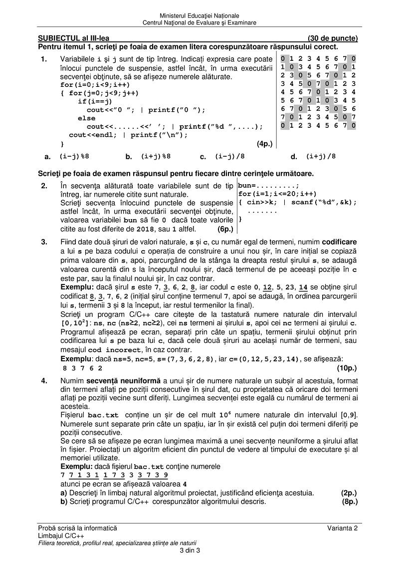 Subiecte Informatică Bac 2018. Ce au avut elevii de rezolvat la această probă