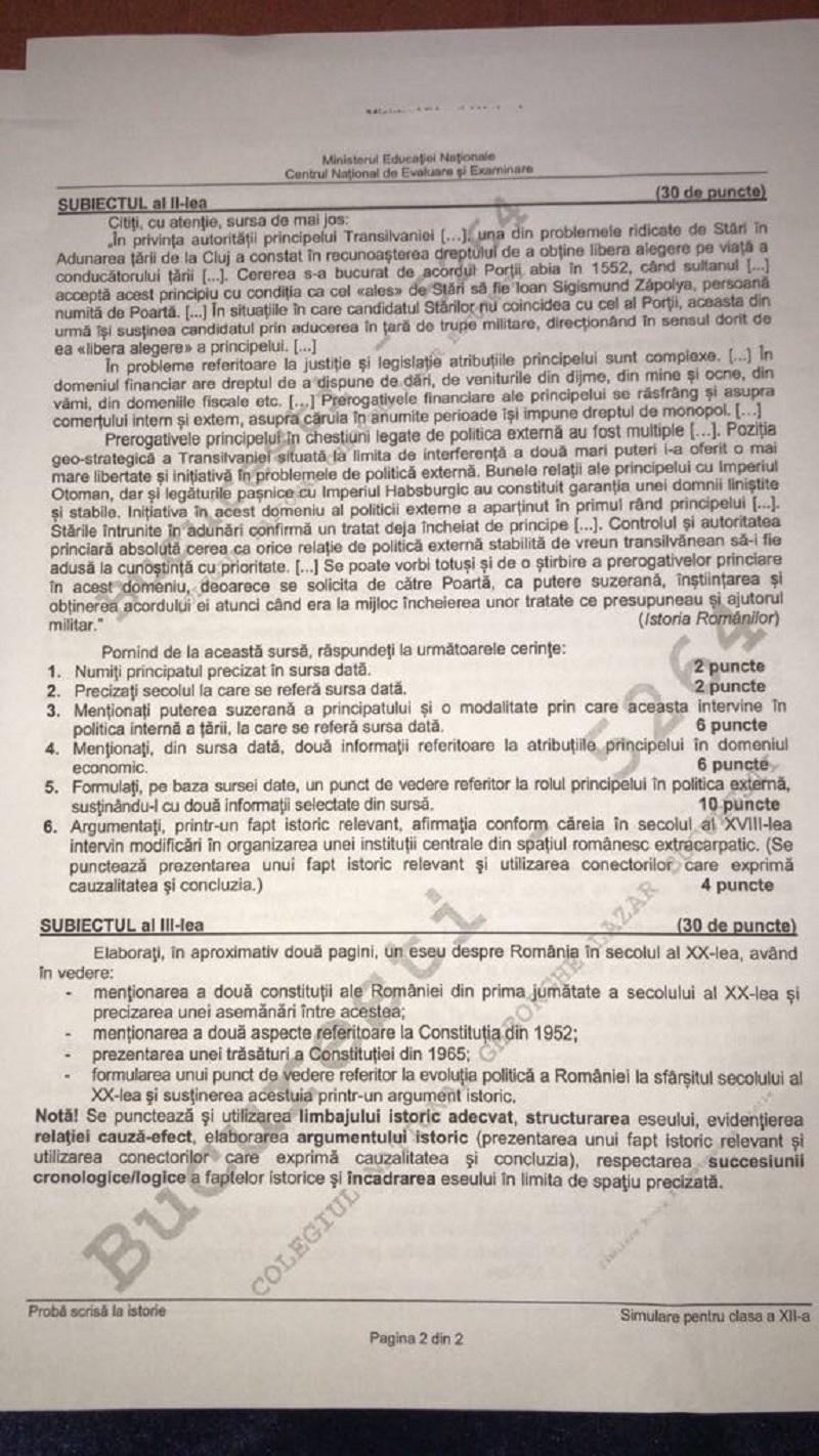 Subiecte Simulare Bac 2018 istorie, clasa XII