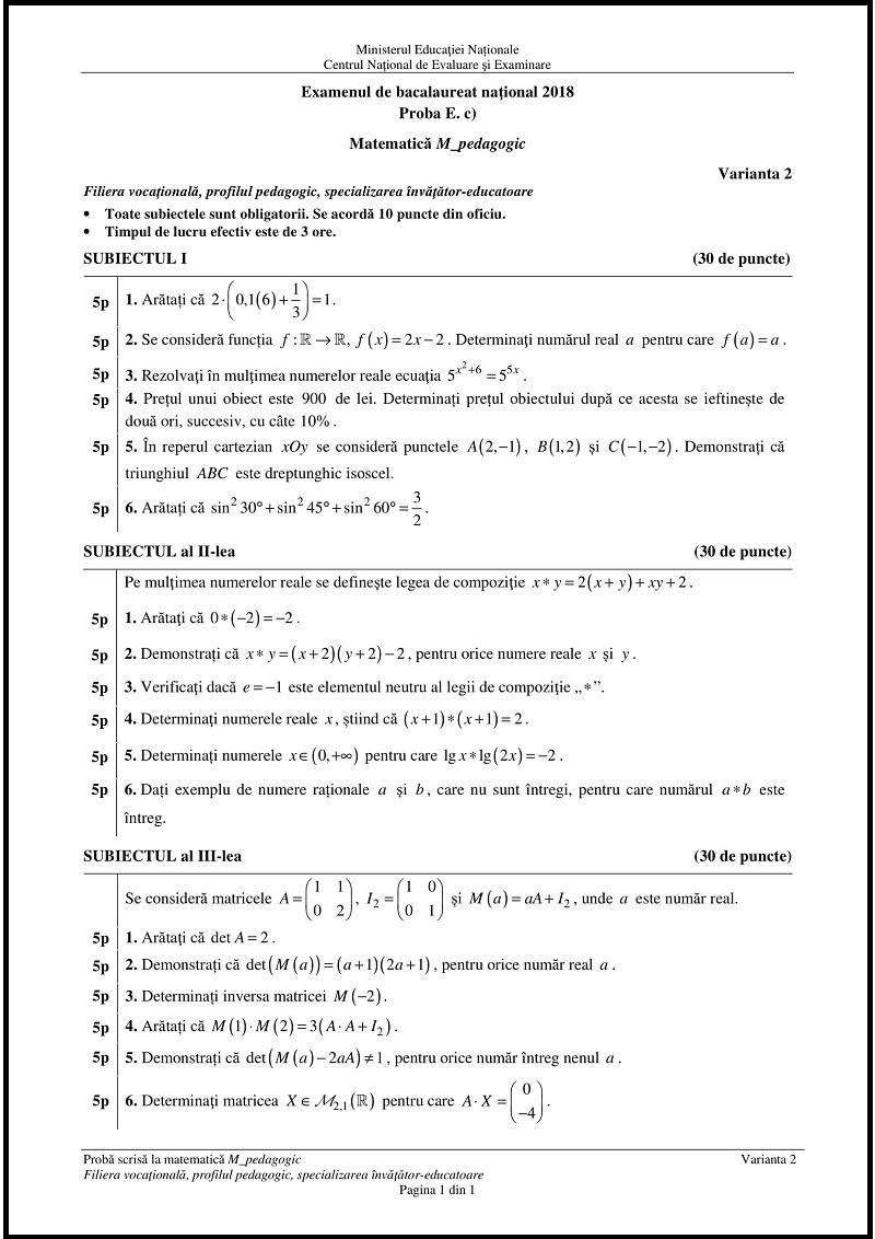 Subiecte matematică Bac 2018: Ce au avut de rezolvat elevii la matematică