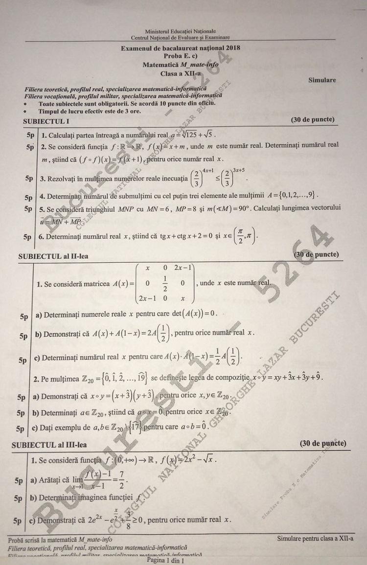 Subiecte simulare Bacalaureat 2018 la matematică. Ce subiecte au primit elevii claselor a XI-a și a XII-a