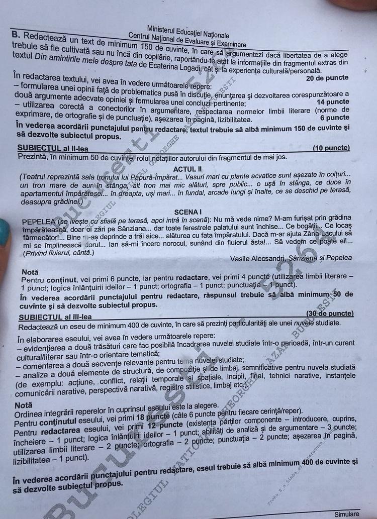 Subiecte simulare Bacalaureat 2018 la limba română. Ce subiecte au primit elevii de clasa a XI-a