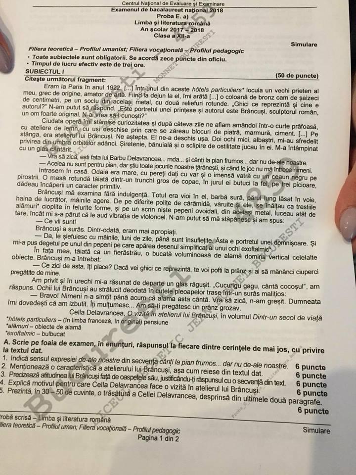 Subiecte simulare Bacalaureat 2018 la limba română. Ce subiecte au primit elevii claselor a XI-a și a XII-a