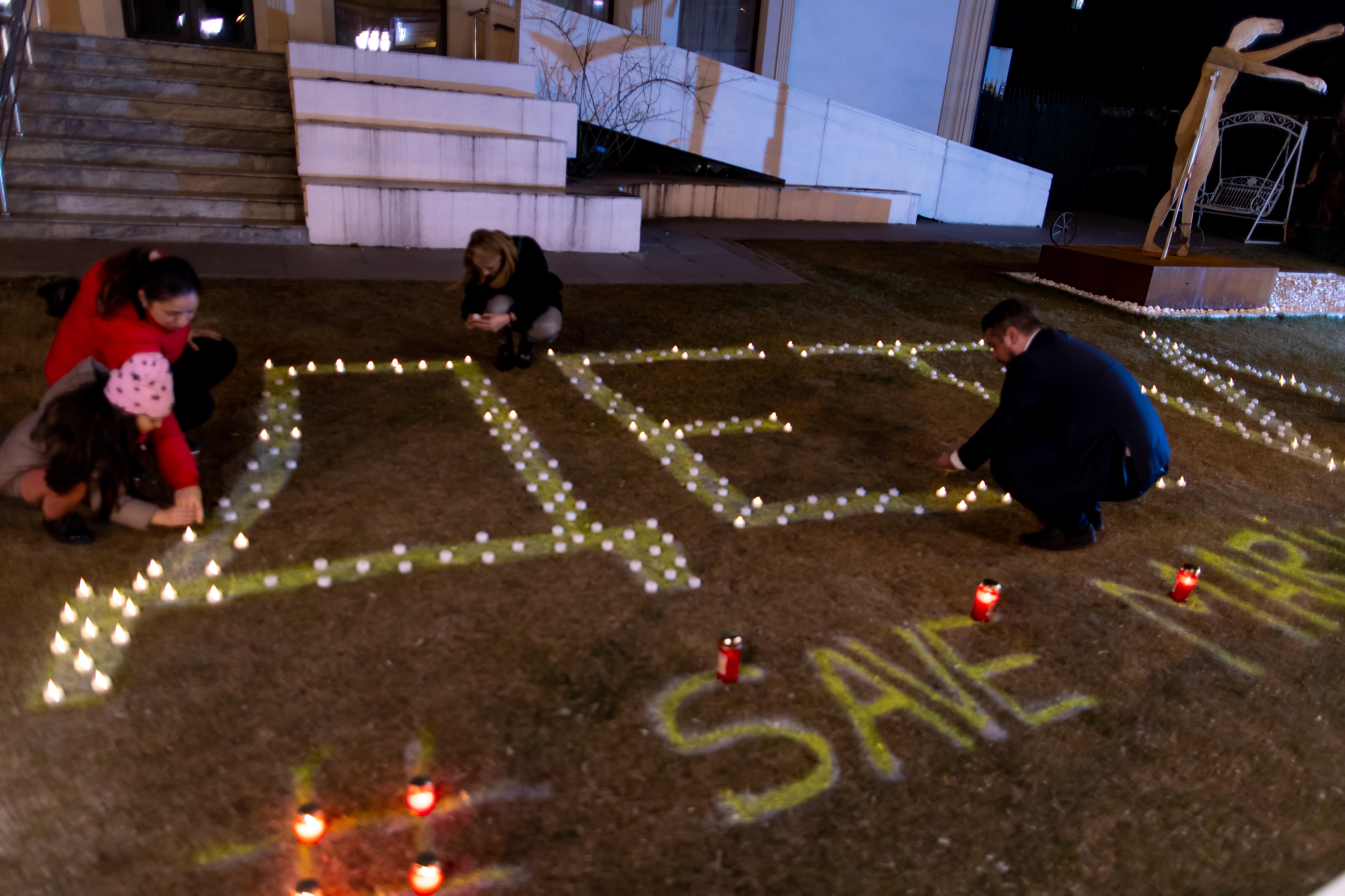 Sute de lumânări au fost aprinse în faţa Ateneului din Iaşi, în semn de solidaritate cu victimele civile ale războiului din Ucraina