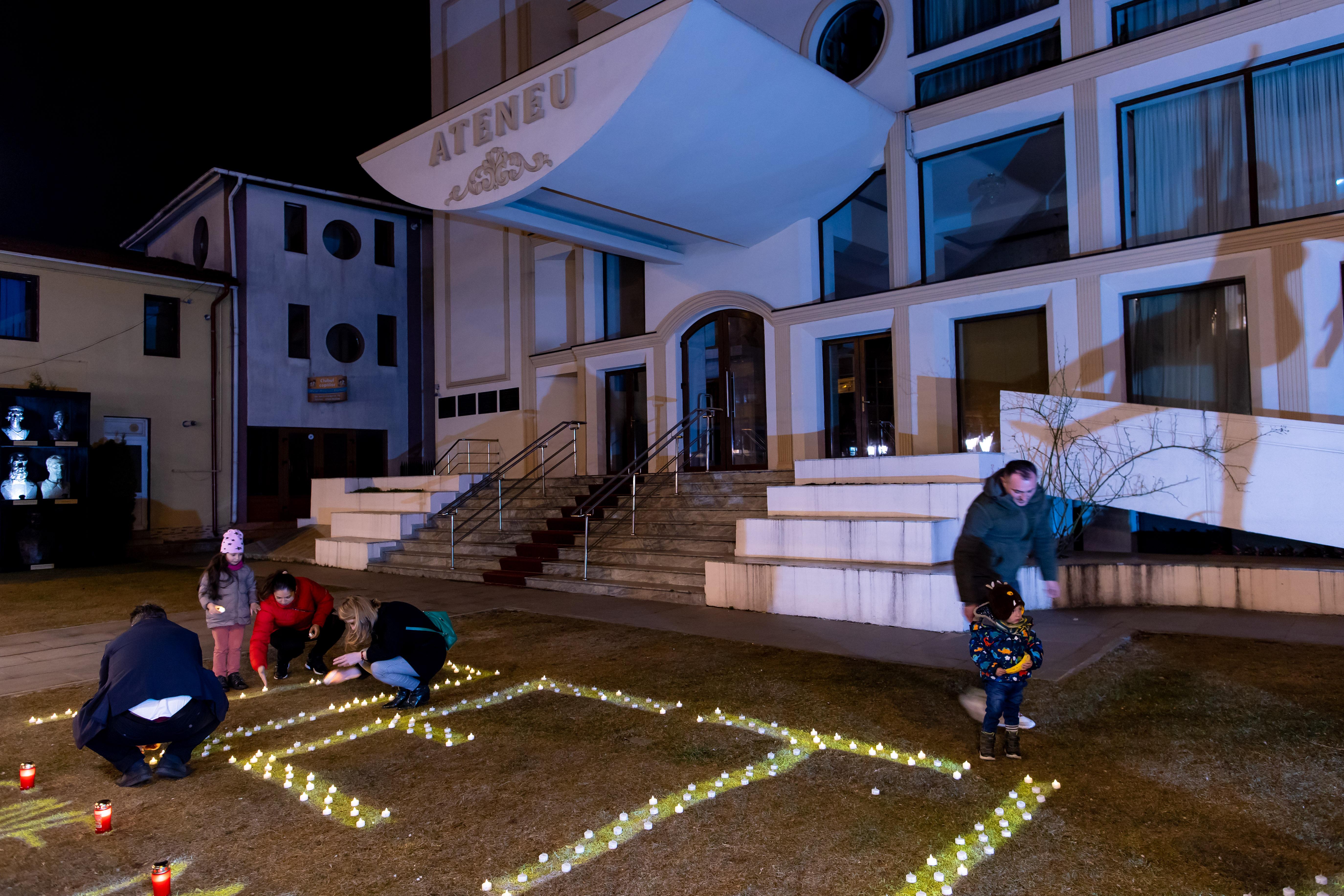Sute de lumânări au fost aprinse în faţa Ateneului din Iaşi, în semn de solidaritate cu victimele civile ale războiului din Ucraina | Imaginea 3 din 20 | Galerie Foto