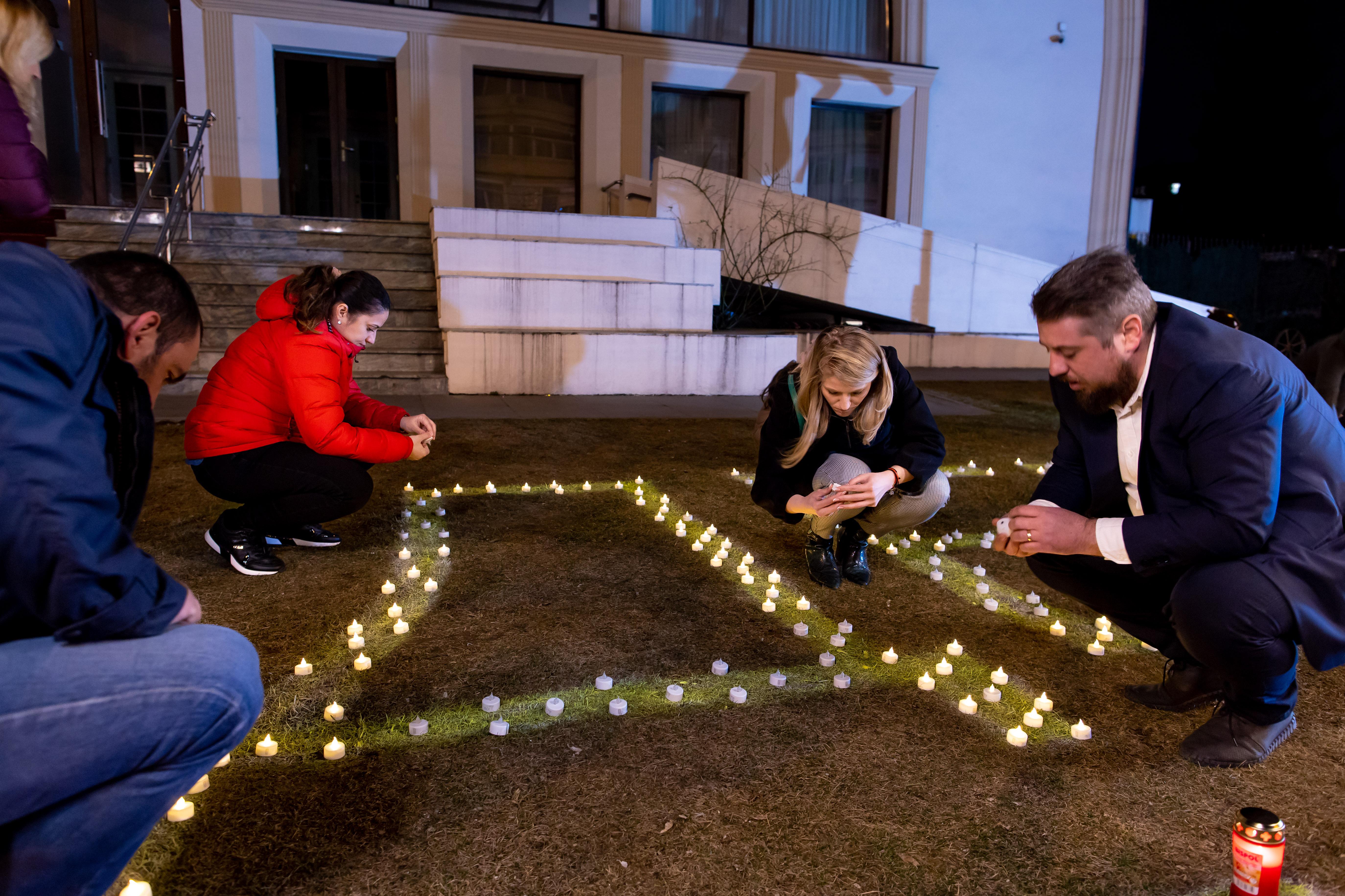 Sute de lumânări au fost aprinse în faţa Ateneului din Iaşi, în semn de solidaritate cu victimele civile ale războiului din Ucraina | Imaginea 4 din 20 | Galerie Foto