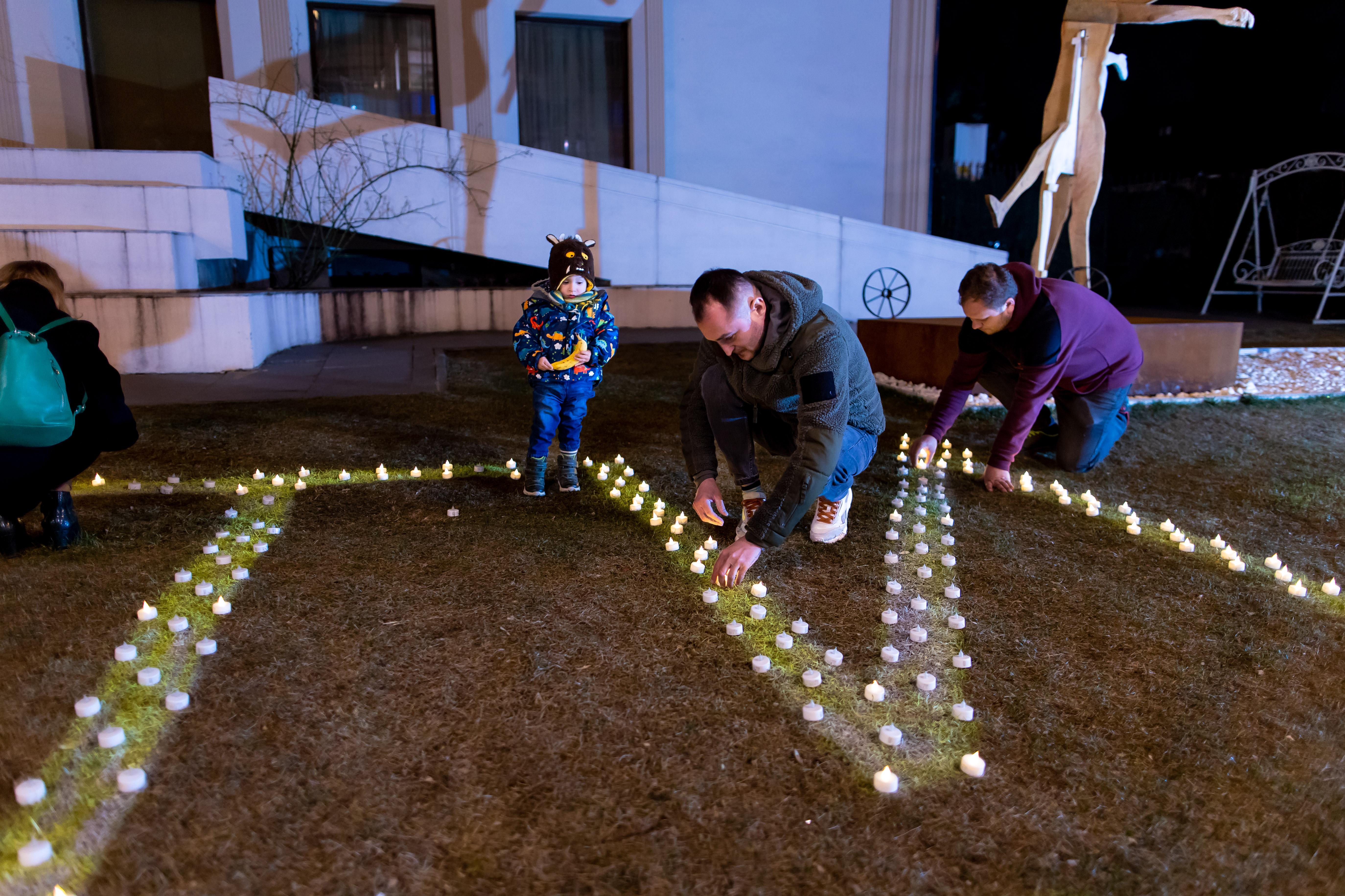 Sute de lumânări au fost aprinse în faţa Ateneului din Iaşi, în semn de solidaritate cu victimele civile ale războiului din Ucraina