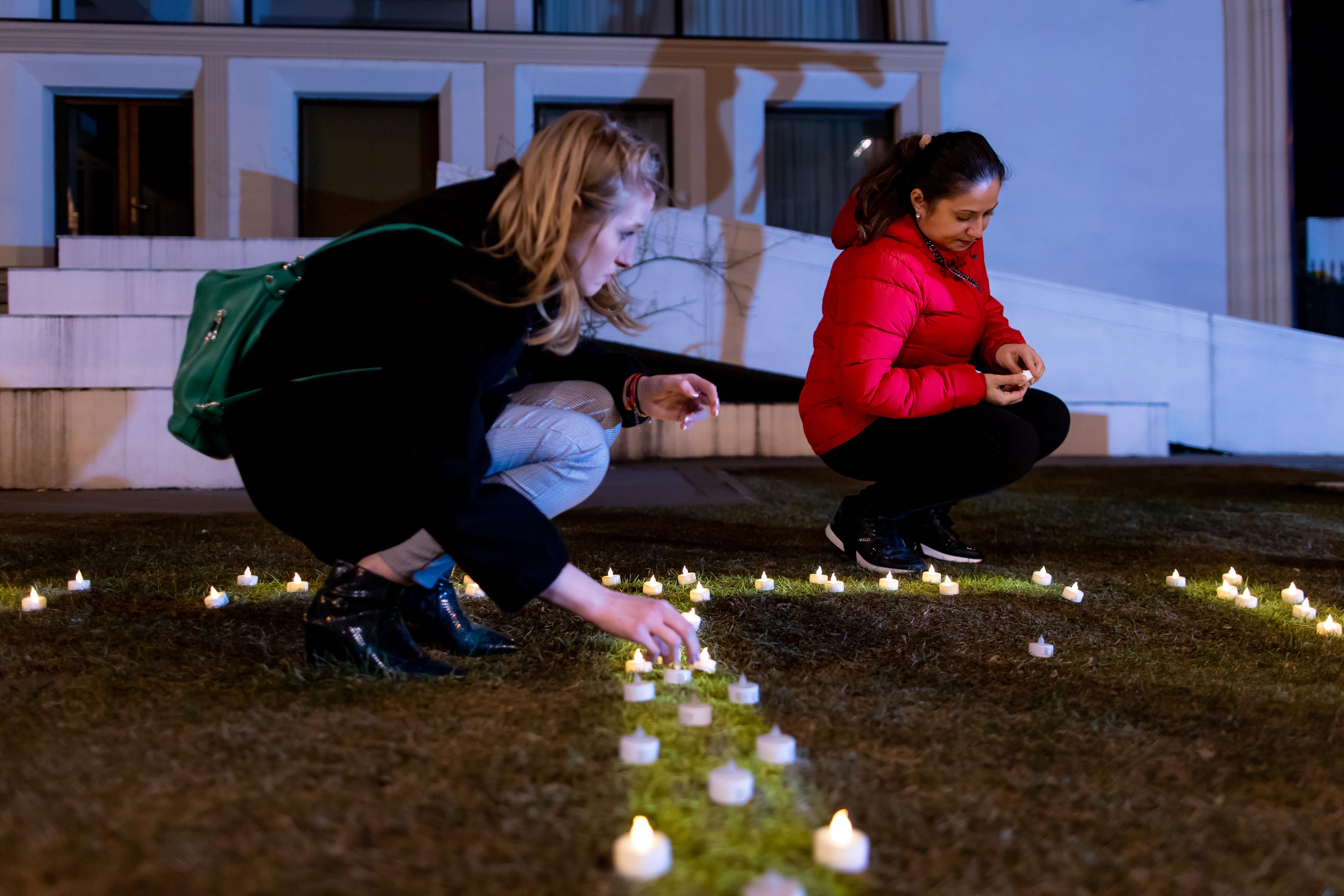 Sute de lumânări au fost aprinse în faţa Ateneului din Iaşi, în semn de solidaritate cu victimele civile ale războiului din Ucraina | Imaginea 8 din 20 | Galerie Foto