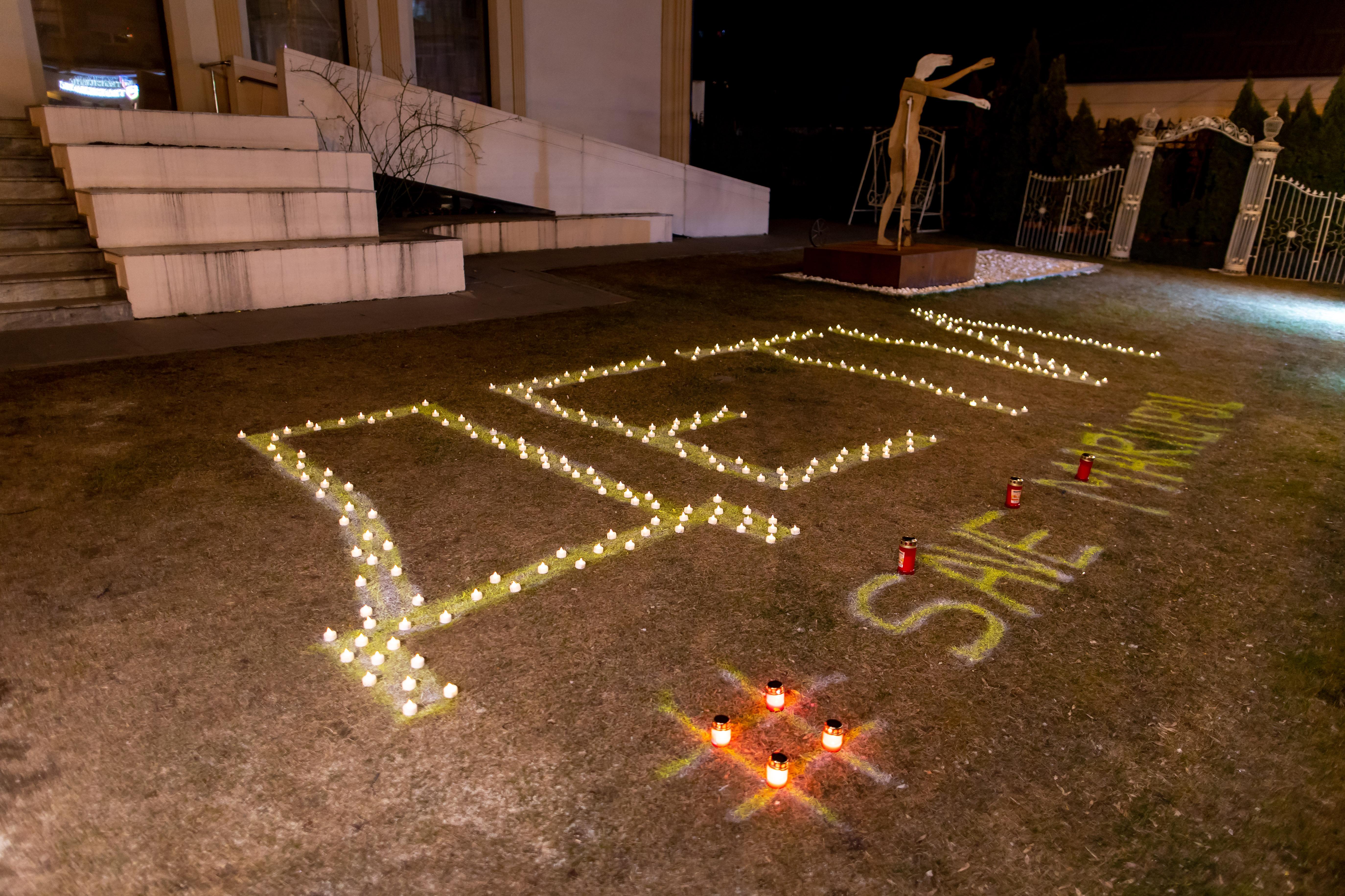 Sute de lumânări au fost aprinse în faţa Ateneului din Iaşi, în semn de solidaritate cu victimele civile ale războiului din Ucraina | Imaginea 15 din 20 | Galerie Foto
