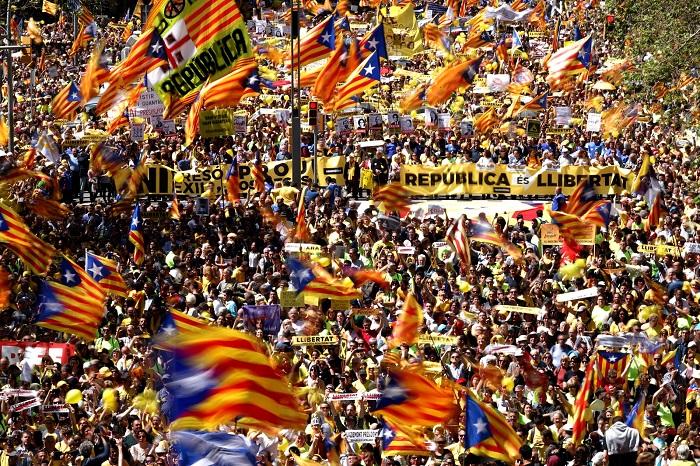 Sute de mii de oameni în stradă, la Barcelona. Se cere eliberarea liderilor separatişti catalani arestaţi (video)