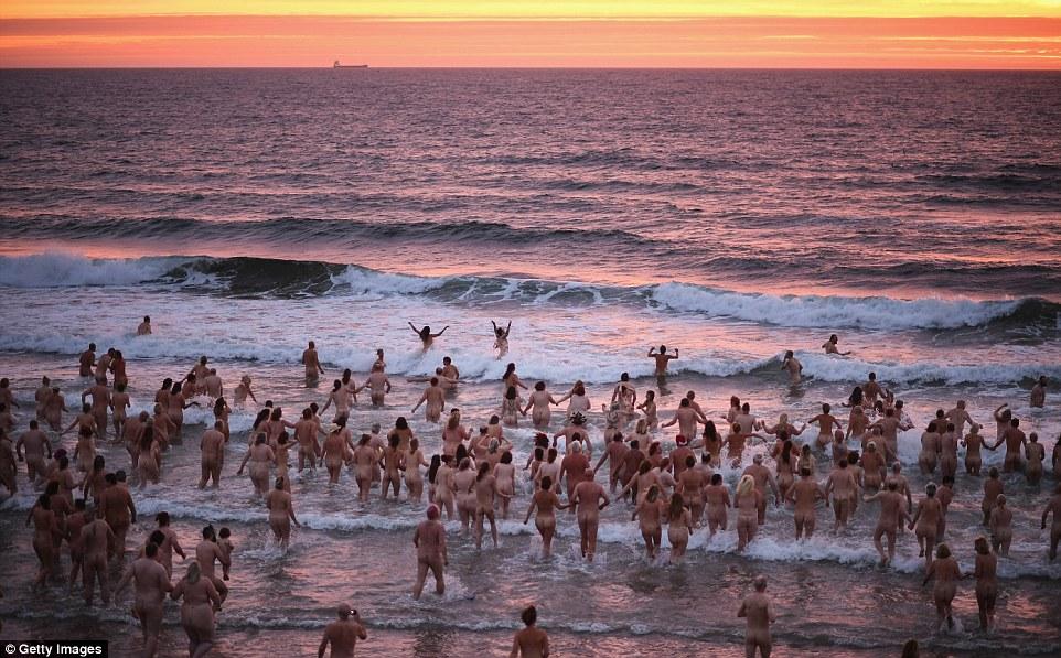 Sute de oameni complet DEZBRĂCAŢI au participat la o cursă inedită de înot - GALERIE FOTO