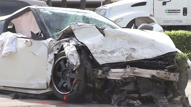 Un SUV Tesla a fost rupt în două de un Nissan GTR. Şoferul a plecat pe roşu de la semafor (video)