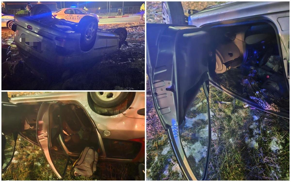 Tânără de 28 de ani, beată şi drogată, urmărită în trafic de poliţie până s-a răsturnat cu mașina într-un giratoriu din Arad