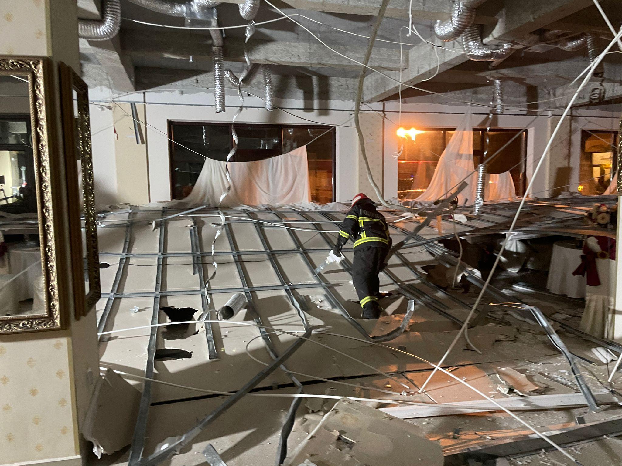 Tavanul unui restaurant din Brăila, prăbușit în toiul nunții. Bucățile de rigips au căzut peste mesele invitaților