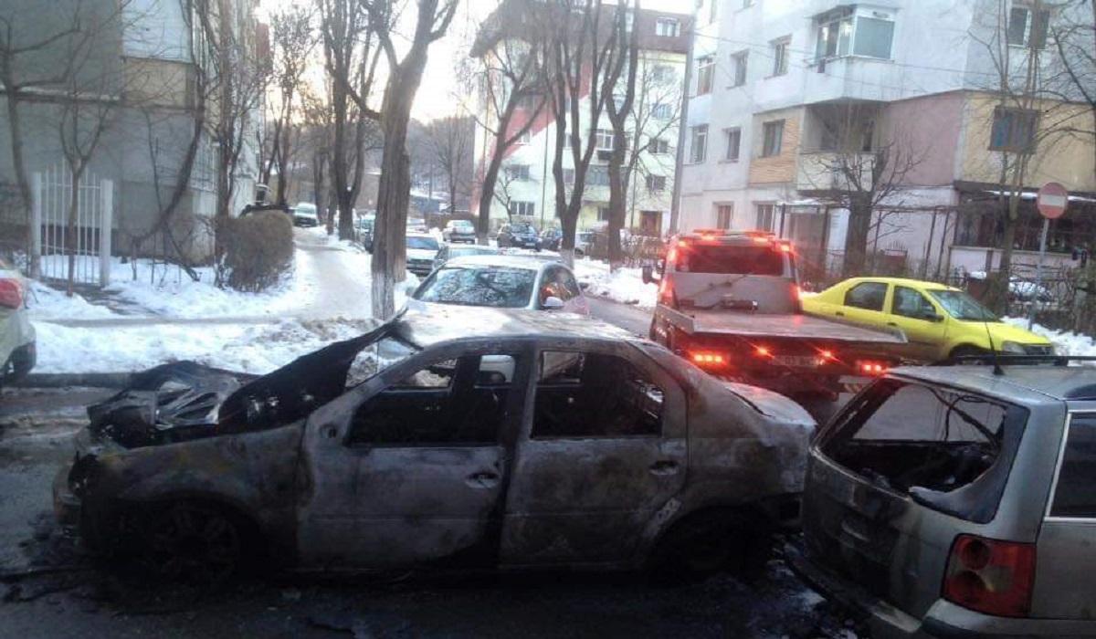 Un taxi a explodat pe stradă, la Iaşi, totul a fost filmat. Maşina s-a făcut scrum