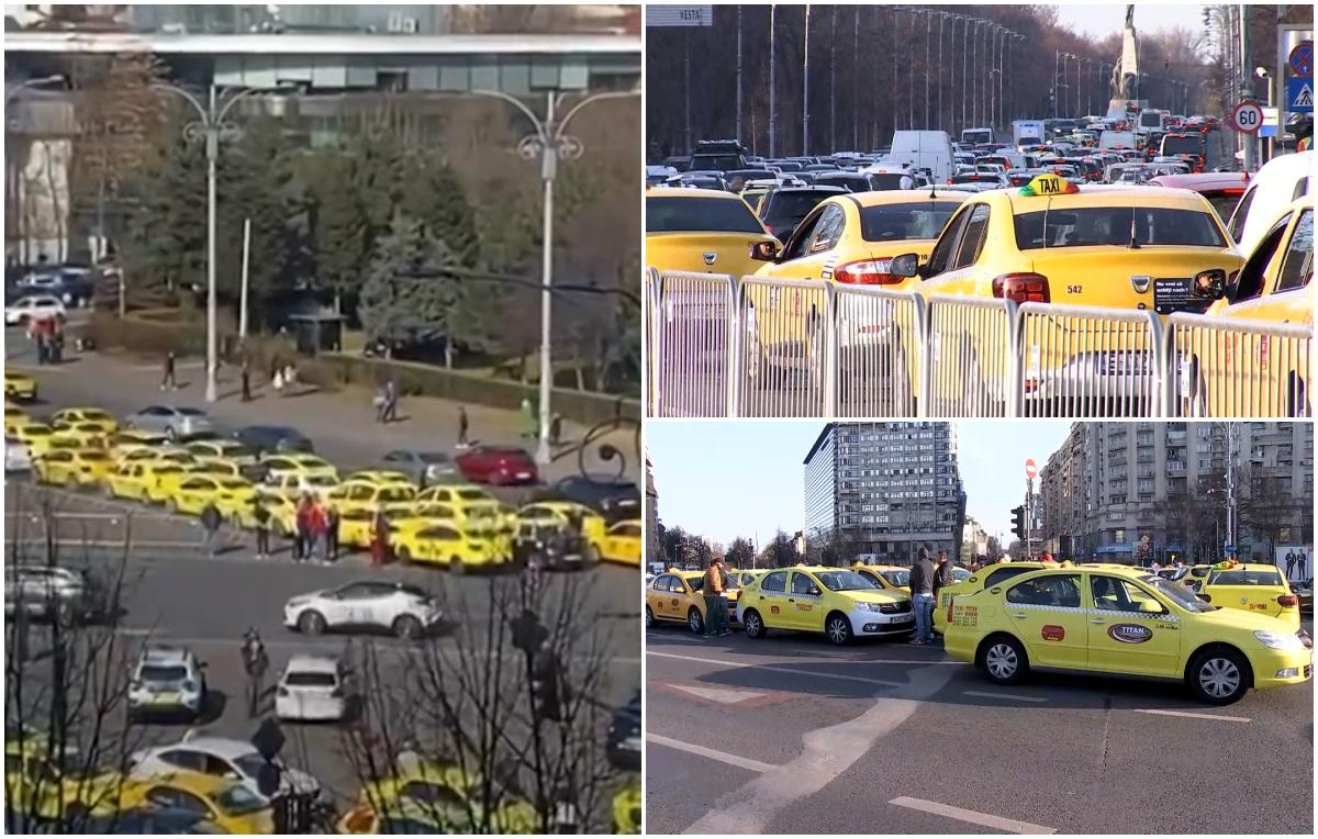 Taximetriştii au blocat traficul din centrul Capitalei, după ce negocierile cu Guvernul au rămas fără rezultat