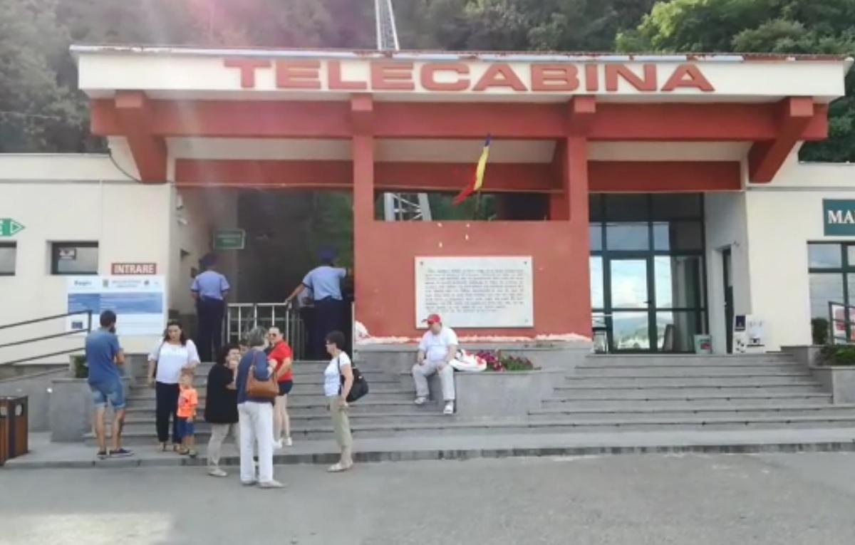 O telecabină care urca spre cetatea din Deva s-a blocat. Cei 19 adulți și copii rămași blocați au fost coborâți de pompieri (Video)