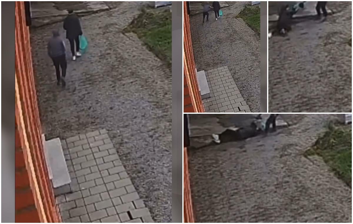Tentativă de jaf în centrul oraşului Târgu Mureş, surprinsă de camere. O femeie de 73 de ani a ajuns la spital, după ce a fost trântită la pământ