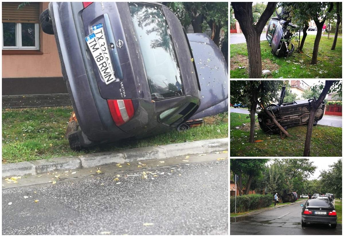 Masina cu numere ascunse, implicata intr-un accident