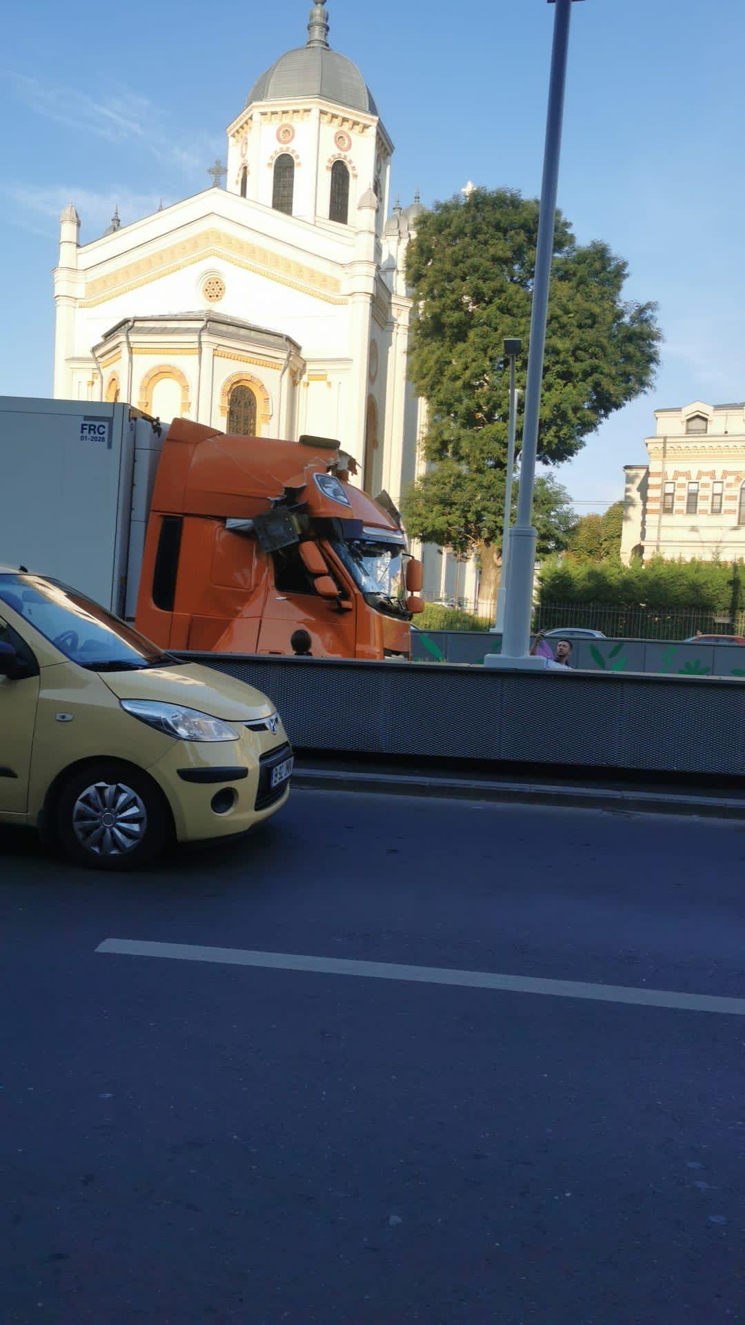 TIR blocat în Pasajul Unirii din Capitală, proaspăt reabilitat. Autotrenul a rupt limitatorul de înăltime