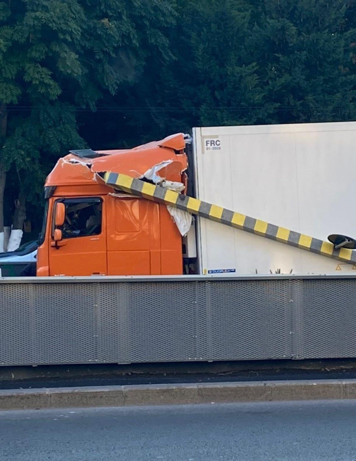 TIR blocat în Pasajul Unirii din Capitală, proaspăt reabilitat. Autotrenul a rupt limitatorul de înăltime
