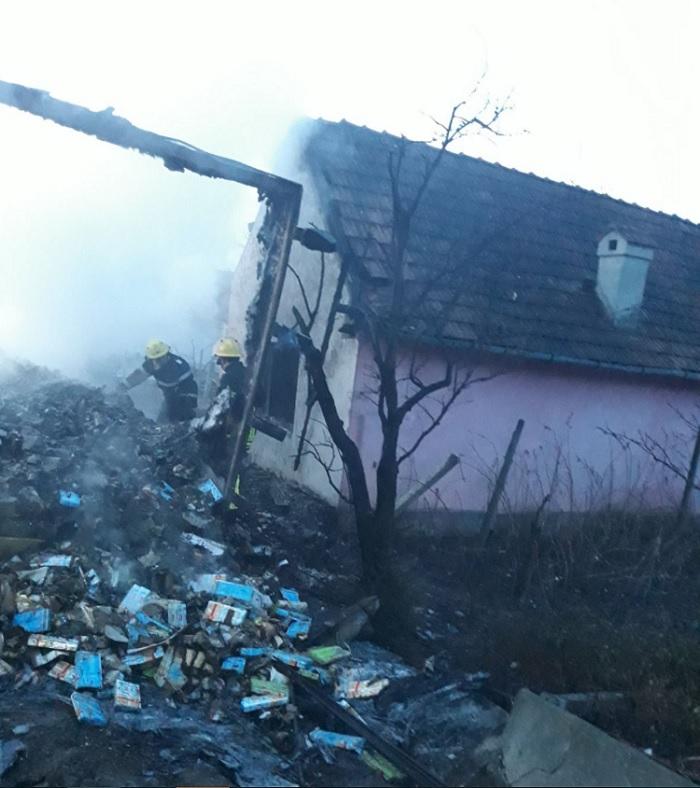 Tir cu ciocolata, în flăcări după ce s-a răsturnat pe un drum din Mureş. Focul uriaş a apris şi o casă (Video)