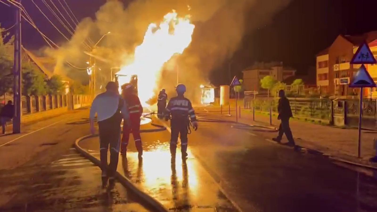 TIR cuprins de flăcări în mers, în Maramureș. Șoferul a reușit la timp să decupleze camionul de remorca încărcată cu paleţi