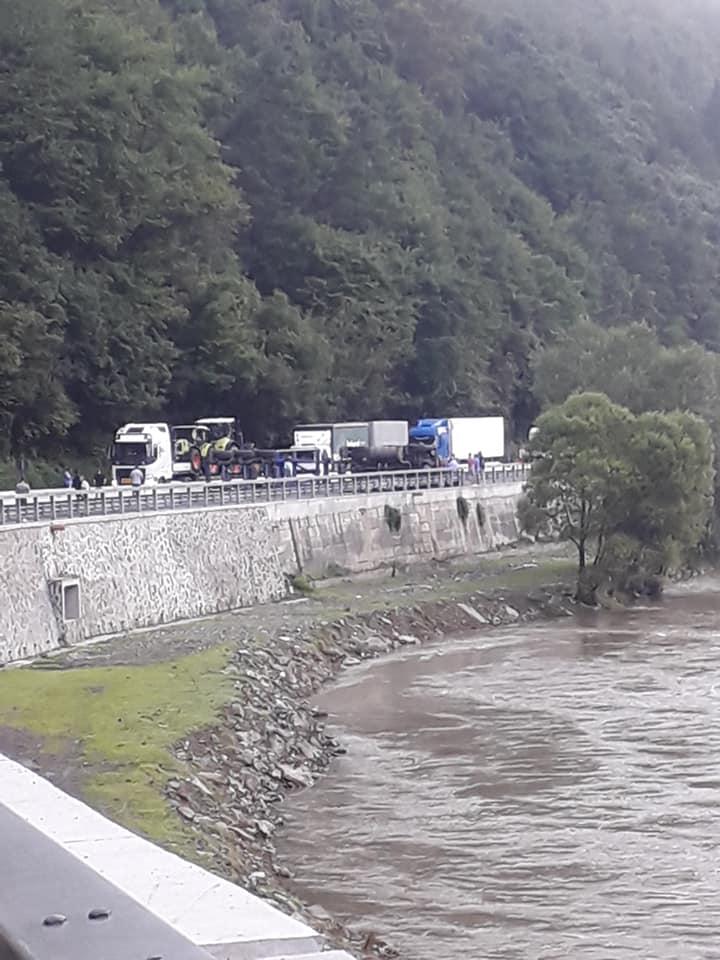 TIR răsturnat pe Valea Oltului, traficul este blocat. Intervin drumarii şi poliţiştii (Imagini dramatice)