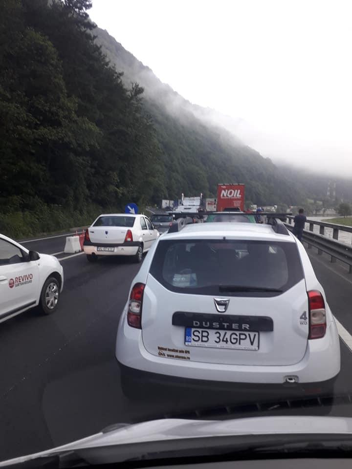 TIR răsturnat pe Valea Oltului, traficul este blocat. Intervin drumarii şi poliţiştii (Imagini dramatice)