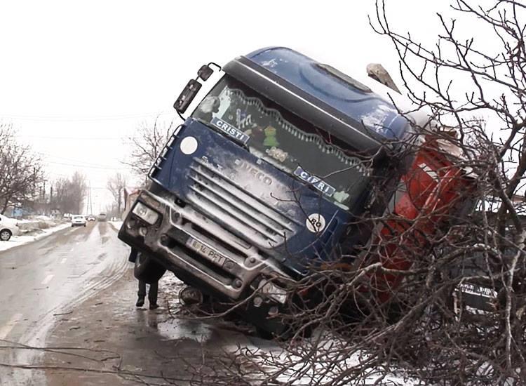 TIR-ul incarcat cu zahar s-a lovit de un copac si s-a rasturnat intr-un sant | Sursa foto: Observator