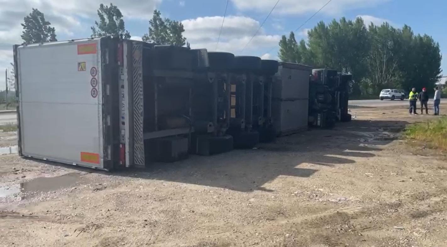 TIR-uri aflate în mers, luate pe sus de vânt și aruncate în afara șoselei, în Timișoara. Șoferii au rămas blocați în cabine