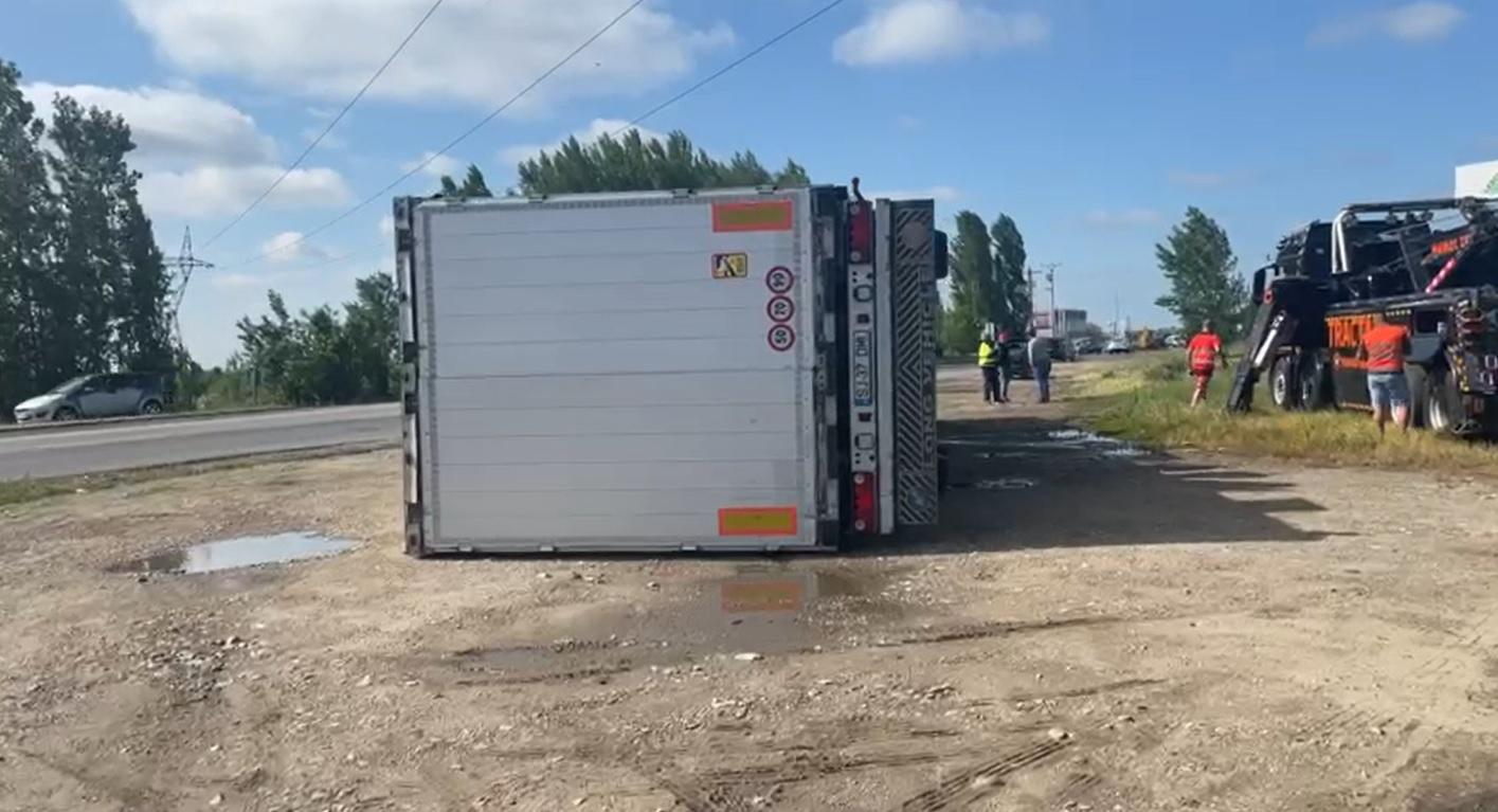 TIR-uri aflate în mers, luate pe sus de vânt și aruncate în afara șoselei, în Timișoara. Șoferii au rămas blocați în cabine