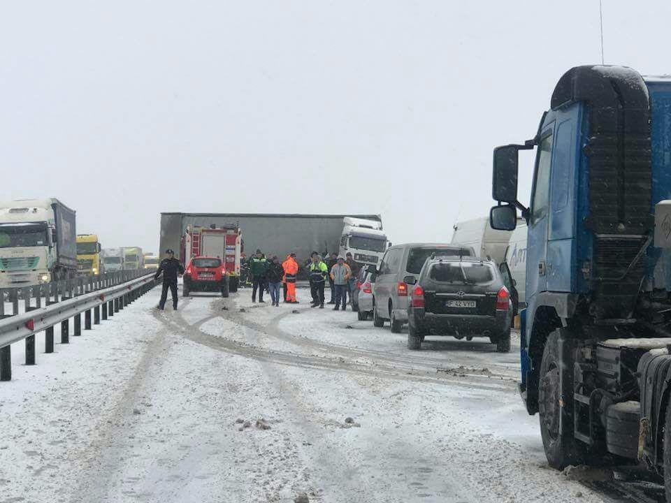 Trafic blocat pe autostrada A1 după ce un TIR a derapat și a blocat ambele sensuri de mers (Foto)