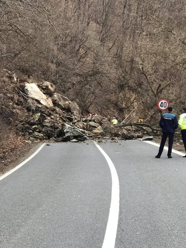 Trafic complet blocat între Reşiţa şi Timişoara. A căzut pe şosea un perete de pe munte