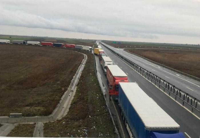 Trafic infernal la vama Nădlac. Coloana de camioane se întinde pe cinci kilometri la ieşirea din ţară (Foto)