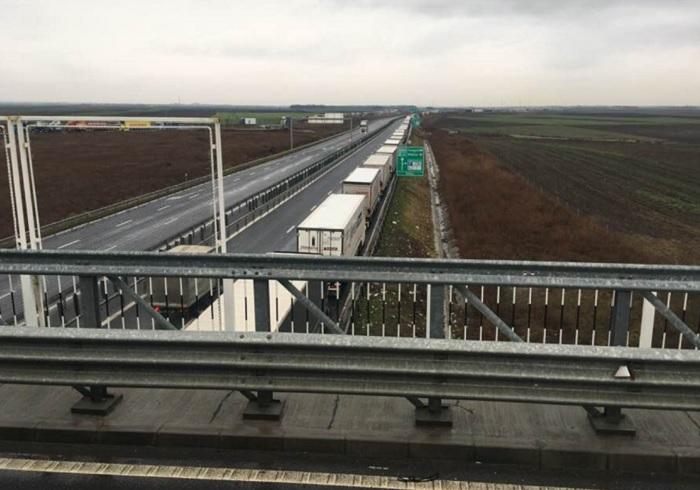 Trafic infernal la vama Nădlac. Coloana de camioane se întinde pe cinci kilometri la ieşirea din ţară (Foto)