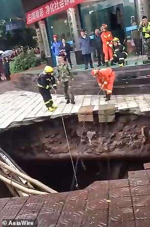 Trecători înghiţiţi de un crater uriaş, după ce trotuarul s-a surpat sub ei din senin. Moment şocant surprins în China (Video)